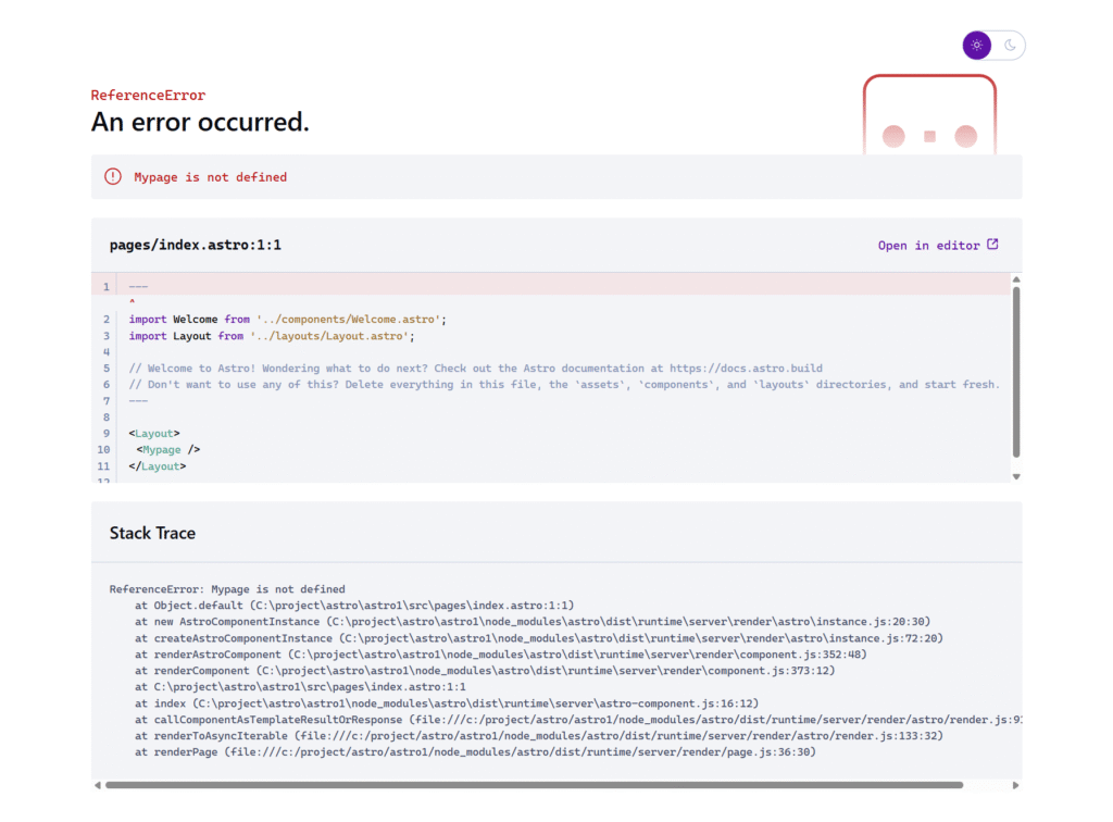 結果は、、やっぱり駄目ですね。Mypageが定義されていないとのこと。